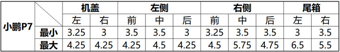 小鹏P7是本次对比中唯二的轿车,和特斯拉Model 3一样,它在门板下方也没有相连的塑料饰板,所以按照我们的测量规则,它也是占了便宜的。从数据上我们可以看到,在前机盖和左侧车门部分,小鹏P7都控制得非常好,但是最终它的表现却只能排到第5位,最主要原因就是尾灯设计得太复杂了,自己给自己挖坑。