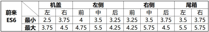 蔚来ES6是一台高端车型,这点大家都不否认,试过的人大多会夸赞它的机械素质、豪华氛围或是科技感,但是却少有人夸它做工好。的确,从我们的测量数据来看,蔚来ES6的四门两盖间隙值是比较分散的,证明接缝的一致性表现一般。