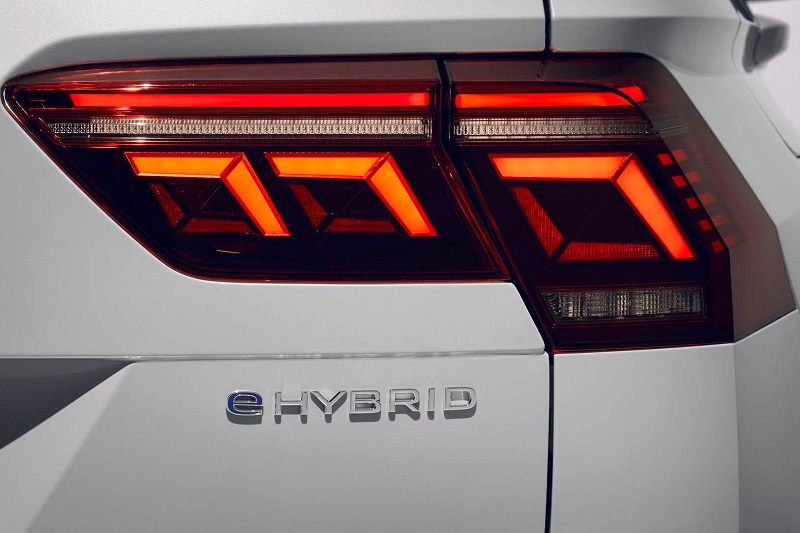 车尾方面,新车依然是熟悉的大众家族式设计,其中后尾灯组采用倒L型设计,内部采用LED光源,点亮后有着很好的视觉效果。并且,新车还将TIGAN的字样布置在大众LOGO正下方,再搭配上后保险杠上的镀铬饰条,使得车尾具有很好的精致感。此外,新车还在车尾右侧布置了eHybrid的标识,以彰显新车的新能源车型属性。