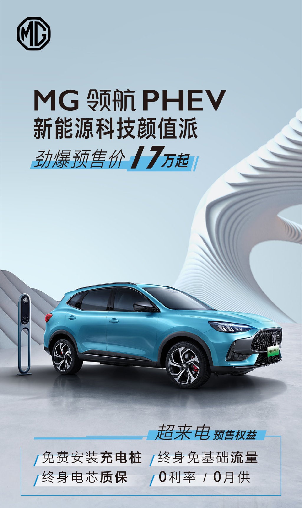 上汽名爵官方还针对MG领航PHEV预售推出了超来电预售权益,包括免费安装充电桩、终身电芯质保、终身免基础流量以及0利率/0月供。