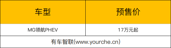 MG领航PHEV延续了燃油版车型时尚运动化的设计思路,名爵第三代“燃动科技美学”设计语言依然赋予了它出众的视觉效果。相比燃油版车型,它具有更好的动力性,同时在燃油经济性上也有更好的表现,更能够满足部分消费者城市通勤的需求。此次MG领航PHEV的预售价仅为17万元起,目前来看有着很好的性价比,那么未来它的正式售价又会是多少?就让我们共同期待吧。