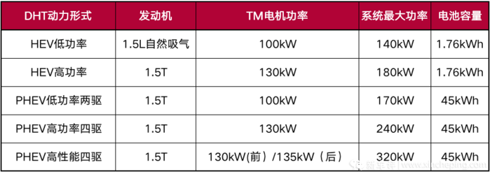 3:三套动力总成,涵盖1.5L+DHT100、1.5T+DHT130、1.5T+DHT130+P4三种动力架构,支持各级别车型搭载。