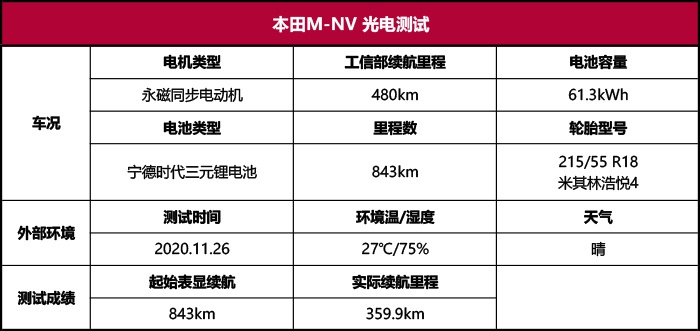 好在东风本田也快速给出了新方案,在现有X-NV的基础上进行了升级,推出了新车M-NV。相比之下,M-NV的外观更加有独立性特点,质感更佳,NEDC续航也从401Km提升到了480Km;在这样的产品力之下,M-NV无疑就有些“香”了起来。为了认证M-NV的实际续航表现能否担当得起家庭第一辆纯电动车的责任,我们决定来一趟电动车的“残酷之旅”——光电测试。