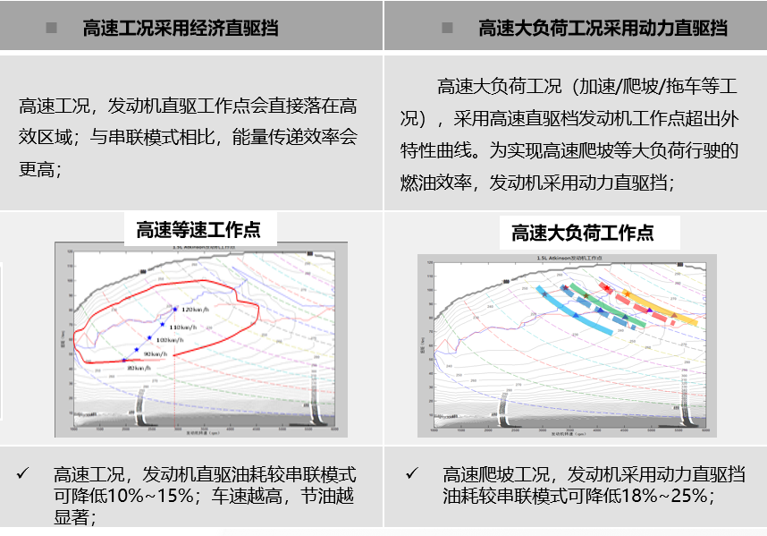 柠檬混动DHT系统提供 EV、能量回收和串联(发动机驱动发电机为驱动电机提供能量)、汽油机/电动机并联驱动(全力加速时)以及发动机直驱模式。发动机直驱模式(动力直驱,也就是低速挡)下,驱动电机依然运行,可以对动力的扭矩输出进行调节,一则匹配驾驶者的扭矩需求,二也可以让动力更平顺。在此速度之上,则进入直驱模式的经济直驱挡,适合高速巡航。