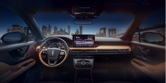 内饰方面,冒险家将林肯品牌本身的美式豪华更加入了科技感,用料方面也有大幅度提升。两块大尺寸液晶屏使用十分便利,视觉效果上乘,车内真皮包裹和覆盖,同时镀铬和烤漆材质的大量使用,也提升了内饰整体的贵气。林肯惯用的按键换挡和启动按钮也被设计成了琴键一般布置在空调出风口下方,十分优雅。可以看到,各处细节包括旋钮阻尼感都对得起林肯豪华品牌的身份,豪华感体现在方方面面。