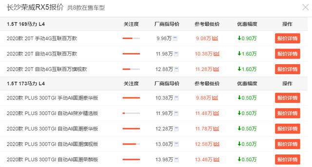 荣威RX5,指导售价:9.98-13.98万元,优惠幅度(湖南):1.6万元。在最近一年的销量当中,荣威RX5也有着不错的销量表现,虽然相较于同级别销量高的车型,还存在一定的销量差距,不过这样的月销数据也还算不错,基本上月销量基本稳定在1万台左右,只不过,希望品质还能得到进一步的提升。如果,你们对于荣威RX5存在的问题,完全不在意的话,那么,还是值得考虑购买的。