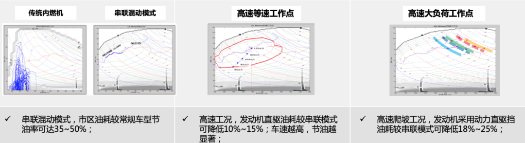混动系统相对传统燃油系统,最核心的优势是高效,而高效运转带来的便是高性能与低消耗。在这方面,功率分流式混动偏向于发动机驱动车辆,电动机更多的是辅助,加速时辅助、起步时辅助等,电动机的作用并没充分发挥出来。单速混动是接近于纯电驱动模式的混合动力系统,这又忽视了内燃机的作用。这两种系统,都无法达到最优的性能和经济性。