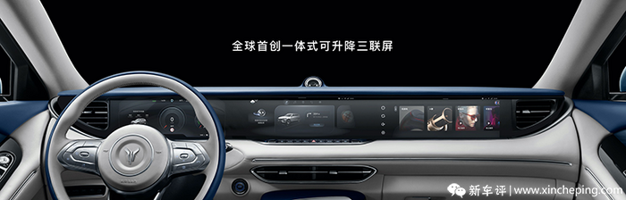 车内部分,最为亮眼的设计是全球首创一全式可升降三联屏,当车主坐进车内,整个中控屏将完成一次上升,让用车体验更有仪式感。据介绍,这一设计是对16种设计方案进行反复讨论验证,在100次以上布置、结构、材料的综合判断的结果。该系统还具备30000次以上升降体验保障。
