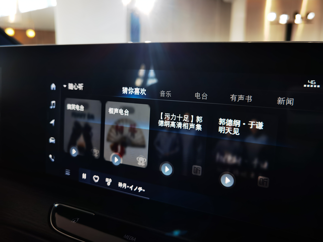 客观功能是车机向用车人提供的娱乐功能,也就是假定用车人不希望在上车之后使用手机从而提供的功能。3.0系统中的“随心听”功能就是如此。“随心听”功能中,音乐、电台、有声书、新闻由不同服务提供商支持。而且后期也可以进行自定义服务商更换。如,现在的音乐供应商为酷我音乐,而我们在服务提供商的图标内看到了如QQ音乐和网易云音乐,日后如果可以进行更换会比较方便。而且在实现用户、歌单同步后,就可以轻松做到主客观功能的融合,实现上车不用手机播放音乐。