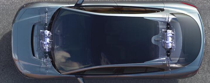 当然,对于一台追求性能的纯电车而言,不谈性能是不行的。I-PACE用的是两台永磁同步电机,综合功率可轻松达到400Ps,峰值扭矩更是达到了696N·m。得益于电动机的零启特性,即便在静止状态下,深踩一脚电门,696N·m也能喷薄而出。推背感犹如猛虎下山,让人眩晕不已。零百加速时间更是只有4.8s。