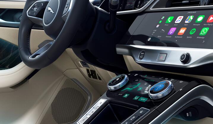 I-PACE的内饰设计也别具一格。没有以往豪华性能车上的用料堆砌,更多是在设计上下功夫。不管是握持感十分饱满的方向盘,还是颇具设计感的中控台。没有太多镀铬装饰,也没有各种华丽的材料,一切从简。顷刻间,一切言语上的表达都显得苍白无力,唯有真实体验才能感受到I-PACE散发的那种英伦之美。