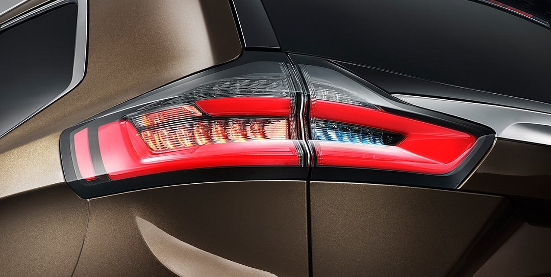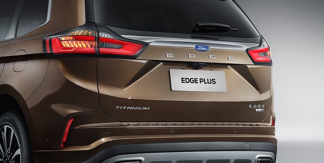 车尾部分,尾灯造型依旧科幻,矩阵式的转向灯以及倒车灯富有科技感,两灯之间设计有镀铬银色饰条,中央镶嵌有福特的品牌标识,非常具有辨识度。除此之外,车尾底部设计有银色护板,双边双出菱形排气使车尾更具力量感。