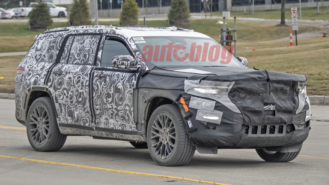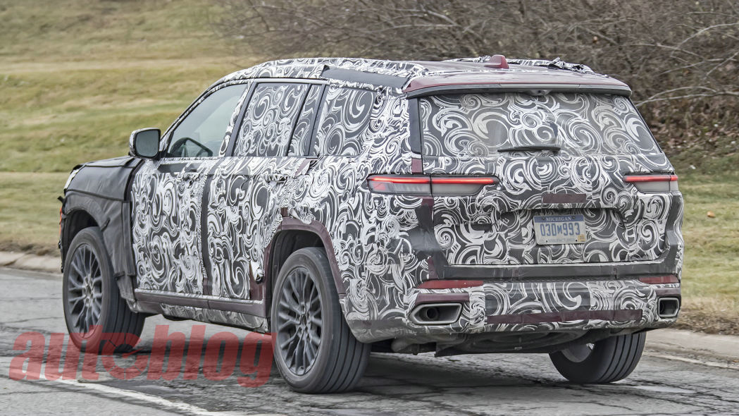 日前,Jeep的三排大切诺基 (配置 | 询价)测试车本周再次在野外被拍到,这次的伪装程度明显比上次我们看到它时少了很多。