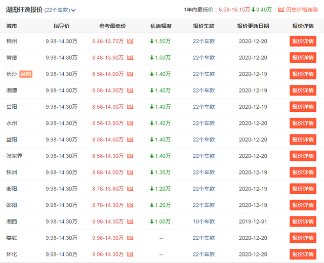 日产轩逸,一直被不少网友称为:小天籁,之所以众多网友这么称呼,就是因为轩逸和天籁有着众多相似之处。定位为紧凑型轿车的日产轩逸,指导售价为:9.98-14.30万元,最高优惠幅度(湖南地区):1.5万元,这样的价格区间,加上较为走心的优惠力度,整体的性价比还是相当不错的。