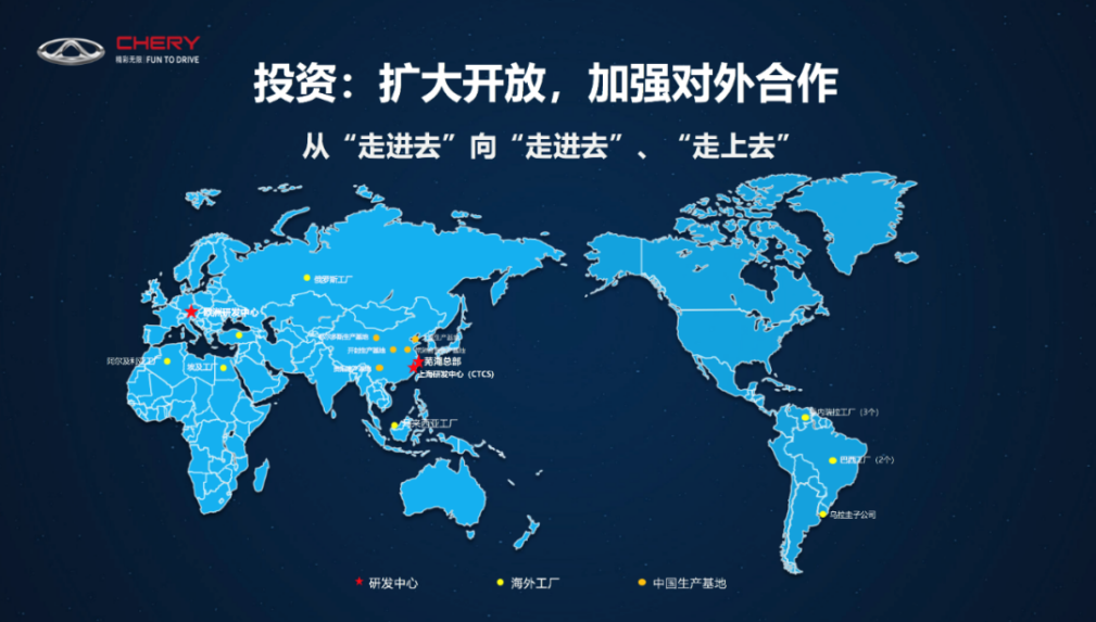 从世界著名汽车品牌的发展实践中不难看出,“走出去”是车企壮大到一定阶段的必然选择。而在诸多的国产汽车品牌中,奇瑞算是最早“走出去”的一批,作为我国最早探路国际汽车市场的自主品牌,奇瑞已经在全球建立了六大研发基地、10个海外工厂、1500余家海外经销商和服务网点,海外总产能达到20万台/年。