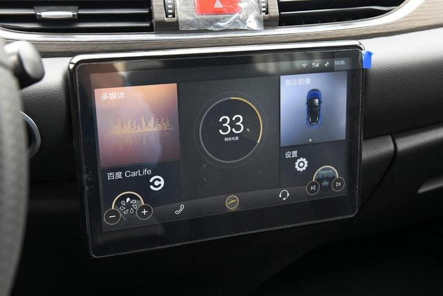 车内配备了一块10英寸全液晶大屏,屏幕位于中控区域靠下的位置,虽然位置比较靠下,好在还算容易比较操控,系统支持CarLife,并可连接4G网络,具备车联网,并可实现语音识别、在线音乐、在线导航、行车记录仪等常规功能。