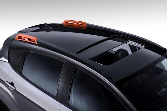 车身侧面线条整体看起来比例均匀,A/B/C柱上都使用了熏黑处理,呈现出悬浮式车型设计,比较吸引人的一点是,在车顶行李架后半段也加入了橙色元素。车身尺寸上和现款车型也保持一致,其长宽高分别为4340/1765/1610mm,轴距为2602mm。