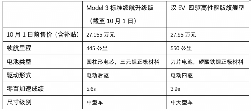即使采用了磷酸铁锂电池、续航里程提升到468km,甚至价格也降至24.99万元,Model 3的续航能力、空间和价格,依然不及汉EV超长续航版豪华型。