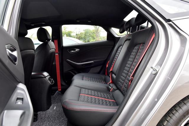 后排座椅和前排座椅材质一样,并且设计上也保持一致,都融入了红色线条的点缀以及"城墙纹理",坐垫长度也符合人体的坐姿,只是在包裹性跟支撑性上表现一般,好在后排配备有独立出风口,但并没有配备USB充电接口。