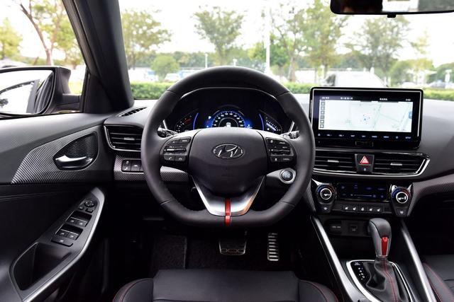 相比外观上的小幅变化,内饰还是延续了老款车型,采用了现代品牌最新的设计风格,在保持运动属性的同时,中控台各功能分区又比较清晰,在方向盘和挡杆上的两道红色装饰,烘托出运动化的风格。不过在内饰材质上,大多数还是塑料为主,只有在门板位置才有小面积的软性材质覆盖。