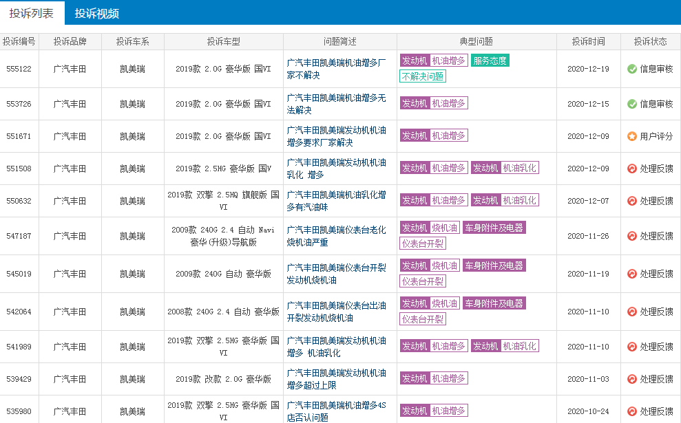 目前在售的2019款凯美瑞车型,机油增多以及机油乳化成为典型投诉问题,一向以“质量品质”标榜的丰田汽车,不知道看到这样的投诉,“打不打脸”,不是“开不坏的丰田”吗?这就是“开不坏”的品质?小编感到有所疑惑。