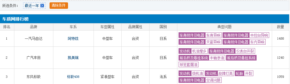 大家都说:“人无完人,汽车同样如此”,尽管凯美瑞有着不错的销量以及综合表现,但是,出现的毛病可不少,在最近一年的投诉当中,广汽丰田凯美瑞,凭借自身的实力“荣获投诉榜前二”,仅次于“响马”阿特兹 (配置 | 询价),取得这样“骄人”的成绩,不知道广汽丰田作何感想。
