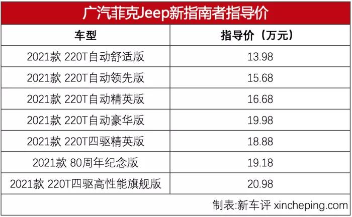 近日,新款指南者上市,全系搭载1.3T发动机,一共7款车型,售价区间为13.98-20.98万元。
