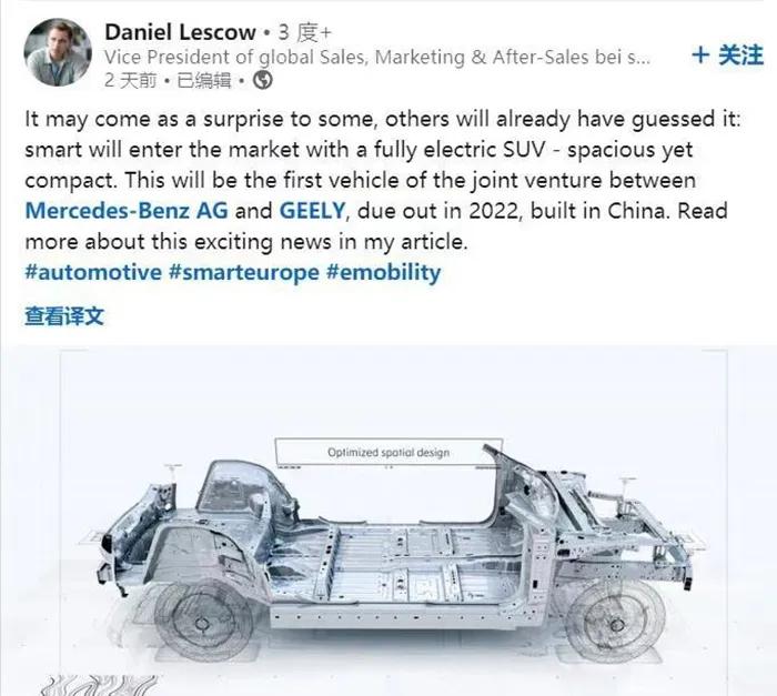 近日,Smart销售副总裁李德斯就透露了一部分Smart最新车型的相关信息;Smart的全新车型将以纯电动的形式诞生,并采用吉利SEA浩瀚架构打造而来。