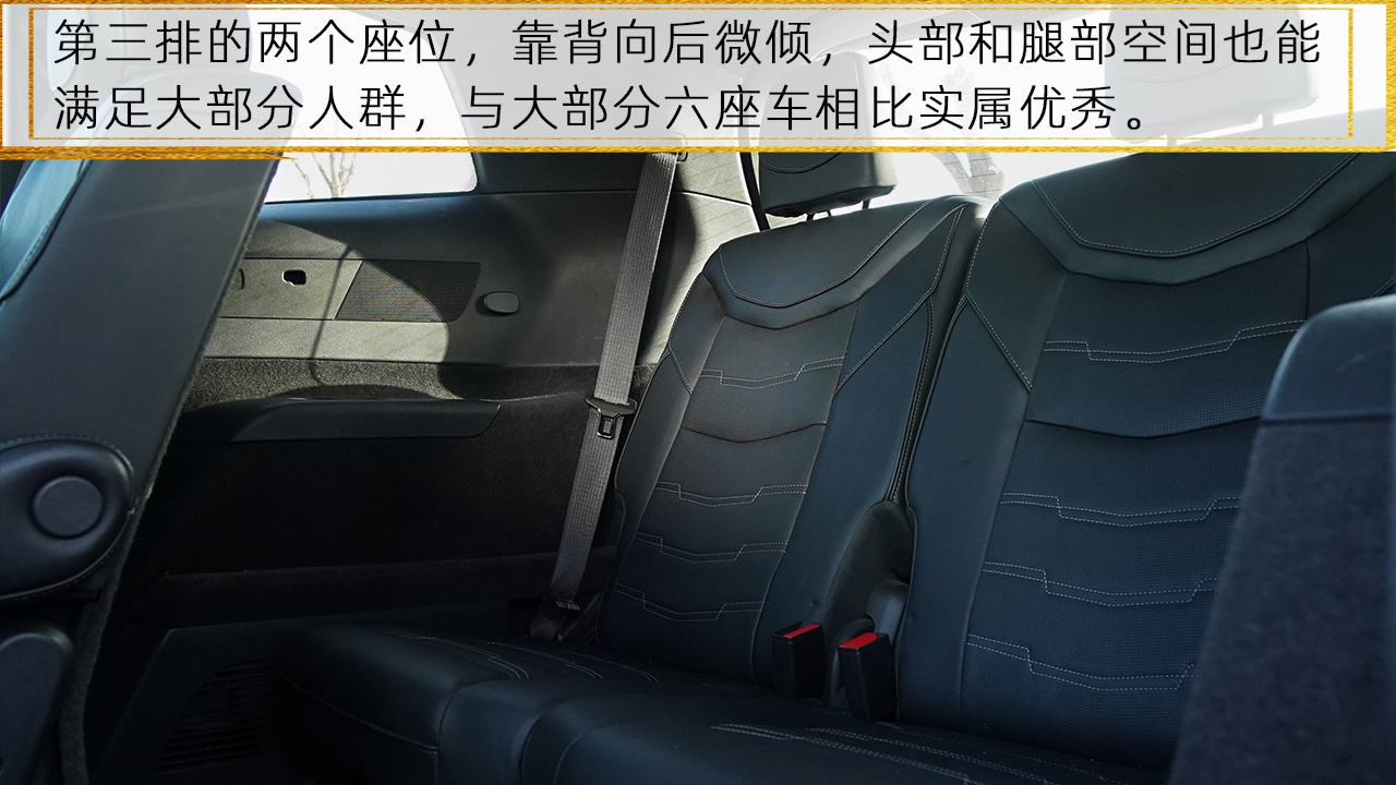 作为同级唯一提供“2+2+2”三排六座布局的车型,后两排的空间和座椅调节是重中之重,想要同时满足三排乘客绝不是容易的事。凯迪拉克XT6第二排的独立座椅宽大舒适,还配有肘拖、空调出风口和充电口,可见对第二排乘客也是相当重视。第三排乘客可以通过第二排座椅中间的间隙或将第二排座椅放倒,来到达自己的座位,上下车非常方便。向后微倾的第三排座椅,还为乘客预留出了宽敞的腿部空间,即使长途出行也无需担心。