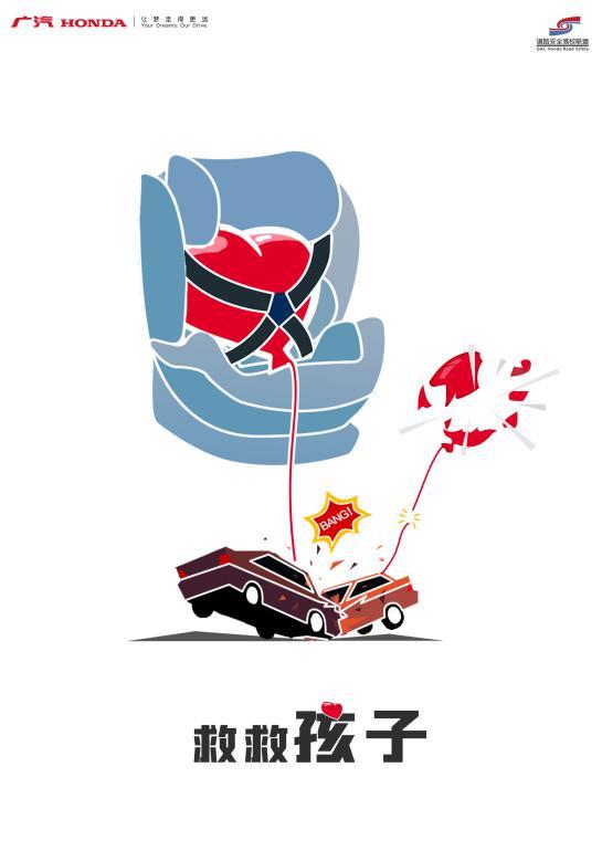 两辆汽车分别搭载了代表着婴儿的红心,当两车相撞,被安全座椅包裹的红心安然无恙,而另一颗没有安全措施的红心直接裂开。画面配文“救救孩子”,让人格外揪心。这是来自2020年广汽本田安全中国行·首届道路安全创新大赛公益广告组的优秀作品《救救孩子》。