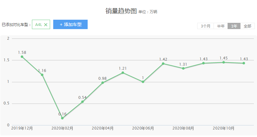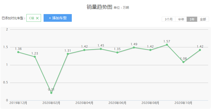 在最近一年的销量当中,奥迪A4L和奔驰C级相差不大,基本上稳定月销量1万多台左右,这样的销量成绩,相较于同级车车型而言,已经是相当出色了,毕竟,在竞争激烈的汽车市场,月销量能过万的车型并不是很多。