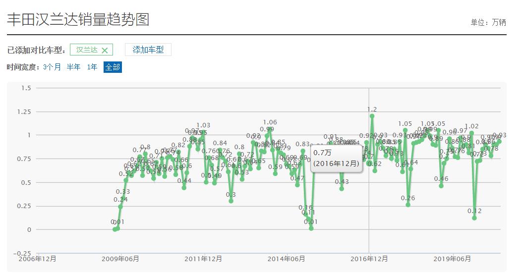 在2016年12月,锐界迎来了整个“车生”最高光的时刻,单月销量突破1.38万辆,而那时的丰田汉兰达也才仅仅取得了单月7000台的销量数据表现。