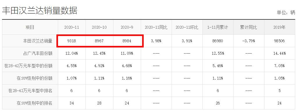 来到2019年,锐界的单月销量已经只能在2000-4000台左右的销量数据边缘徘徊,反观汉兰达,却依旧维持着7000-10000台的单月销量数据,至此,锐界与汉兰达的抗衡最终以锐界的“失守”而告一段落。