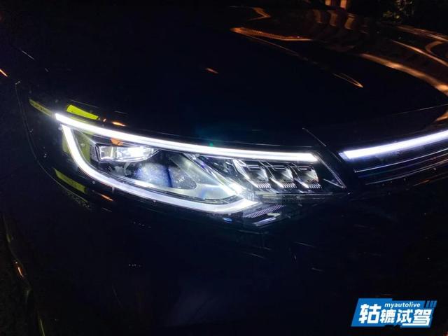 在极具冲击力的前脸的衬托下,荣威iMAX8的前大灯组显得相对狭长,隐约透露着一丝威严感,内部发光晶体也显得科技感十足。而且,其在左右大灯之间还加入了一道灯带,形成贯穿式设计。而全新的银色荣威盾标也进一步提升了档次感。