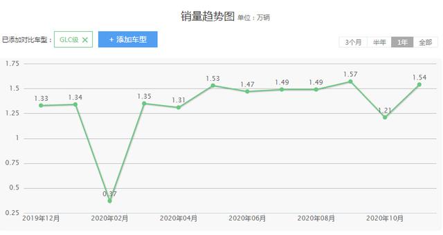 在最近一年的销量当中,我们可以得知,奔驰GLC的月销量基本上稳定在月销量1万多台,这样的销量成绩,在同级别车型领域当中,可以说是相当出色了,由此可见,奔驰GLC在国内汽车市场的受欢迎程度。