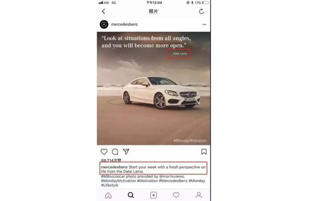 时间来到2018年,奔驰在Instagram上发布的一则引用西藏流亡政府精神领袖第十四世达赖喇嘛引语“从不同角度审视境遇,你的视野会更广阔”的广告语后,遭到了中国网民的强烈反对,要求其自行删帖并道歉。至于原因,主要是该广告语触碰以及间接赞同了达赖喇嘛欲以“自治”之名分裂中国的行为。在如此世人皆知的前提下,奔驰公认发布认同海报,捧达赖的臭脚,一是挑战了国家的利益,二是与整个中国人们为敌。如此低级的”错误,难道只是偶然?