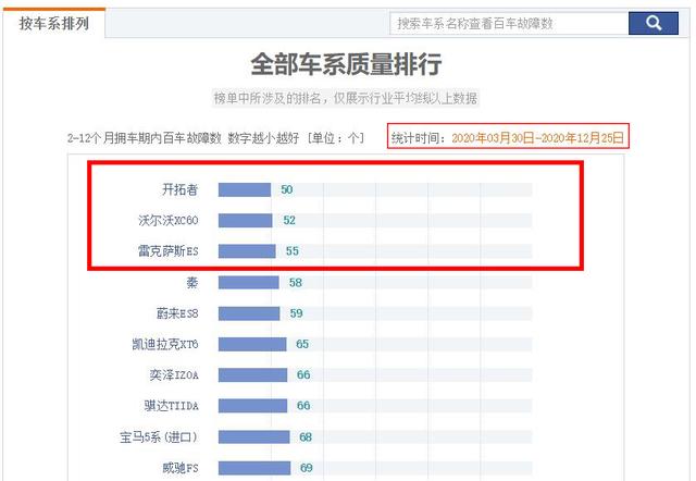 好了,以上就是2020年质量最好的三款车,需要说明的是,该百车故障数榜单为汽车之家统计,因此最终解释权归汽车之家所有。在看完这3款车型的表现之后,你认可它们排名前三的百车故障数成绩吗?下方评论区里留言说说吧,咱们一起交流探讨下。(优视汽车王卓编辑报道)