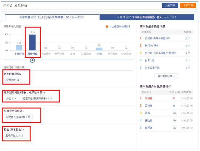 当然,在这平均50个故障数的背后,开拓者也还是在行驶过程中存在较高几率的故障问题。比如用户就反应开拓者在行驶过程中刹车有尖锐杂音(异响)、驻车制动的手刹太松、位置使用不顺手、行驶时车身会明显抖动、胎噪声过大等问题。此外,在车辆的外观方面用户也反应有不少故障。例如前后车门都有异响、前门和车窗的风噪声都很大,而这些都是雪佛兰品牌需要在品控上去努力提升的地方。