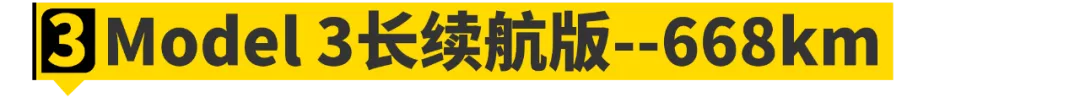 作为目前中国市场最畅销的电动车之一,特斯拉Model 3 (配置|询价) (配置 | 询价)的长续航版本提供了高达668km的NEDC续航能力,成功杀入了续航榜第3的位置。更重要的是,它的价格也仅有30.99万元,对于一款“外国品牌”的电动车来说,算是性价比极高了。