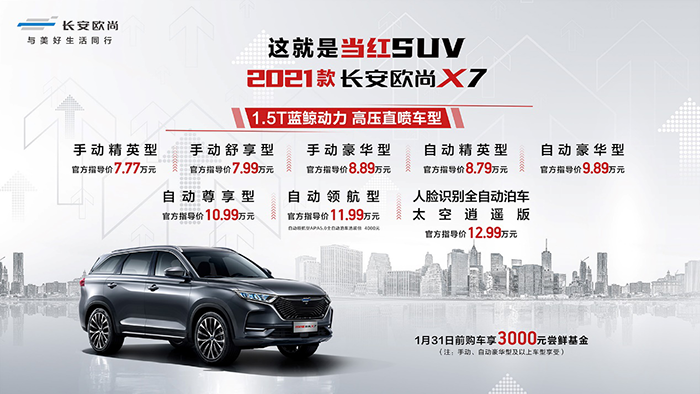 贯彻“助力年轻人轻松实现购车梦”的长安欧尚汽车,旗下多款车型皆以超高性价比著称,并获得了市场的广泛好评。近日,长安欧尚汽车2021款欧尚X7 (配置 | 询价)正式上市。作为长安欧尚品牌旗下的重磅车型,新款欧尚X7 (配置 | 询价)此次最大的亮点在于配置进一步获得了优化与提升,助力年轻人获得更优秀的出行体验。本次新款长安欧尚X7共推出了8款车型,售价区间为7.77-12.99万元。