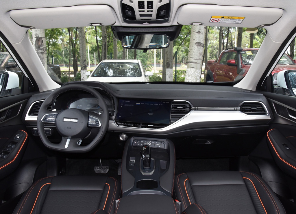 内饰方面,哈弗F7给人感觉非常的舒适科技,中控区域微微侧向驾驶员一侧,符合人体工程学,中控区域全系标配的12.3英寸液晶显示屏,提升了整体的科技感,大面积皮革材质的包裹,加上饰条的点缀,营造出了一种时尚温馨的内饰氛围。