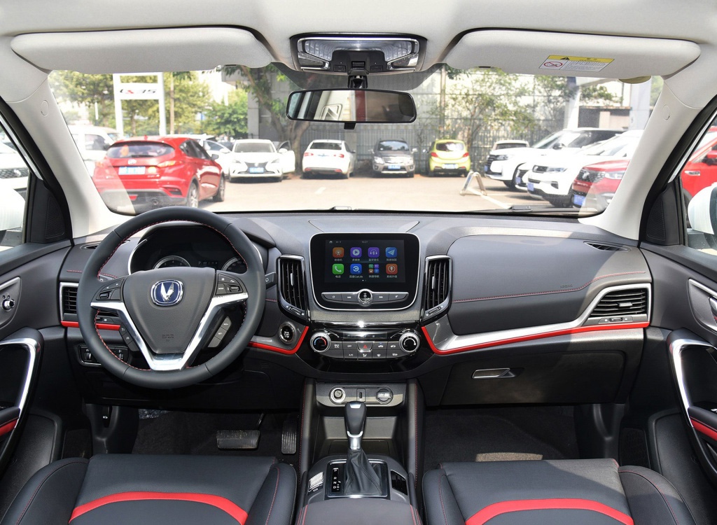 虽然长安CS55的起售价不高,但是,在内饰氛围营造感方面,我们可以看出长安CS55用料非常的扎实,中控区域的液晶显示屏,集成多种功能于一体,各物理按键布局规整整齐,大面积软性材质的包裹,加上镀铬的运用,使其整体看上去非常的舒适温馨有档次感。