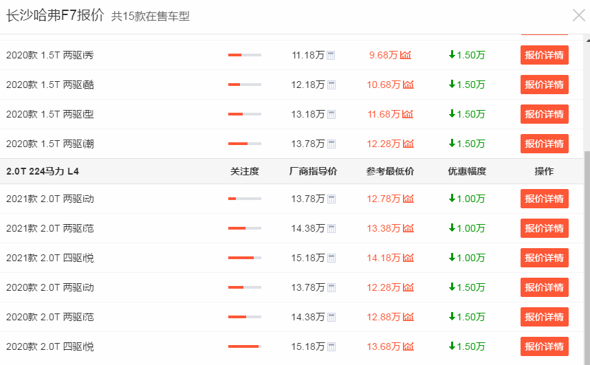 最近一年的销量当中,哈弗F7也有着较为不错的数据表现,这样的成绩就胜过不少同级别合资车型了,11.18万元的起售价,加上较高的优惠幅度,可以说是具有很高的性价比,对于预算有限,想买一台霸气硬朗SUV车型的朋友而言,哈弗F7无疑是非常好的选择之一。