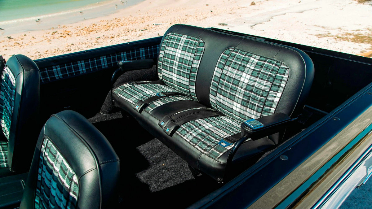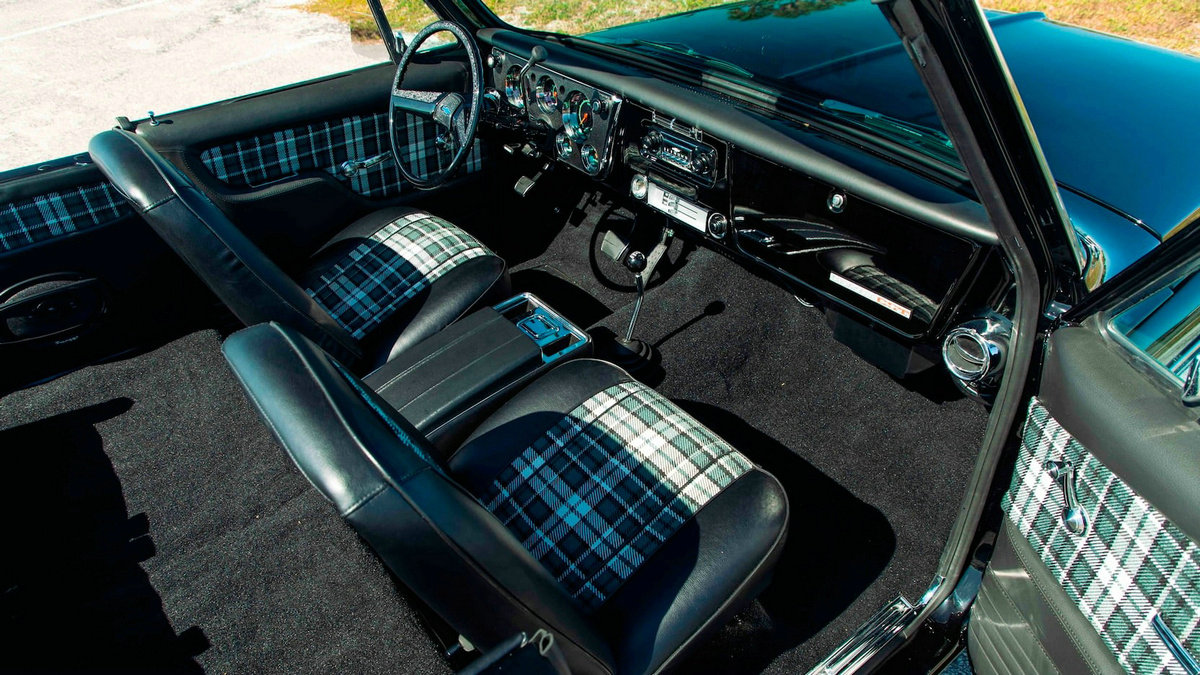 进入驾驶室,原来的格子座椅和倾斜的方向盘柱被保留了下来。它们被新的Dakota仪表、Vintage Air空调系统和RetroSound音响系统所加入。后者看起来很原汁原味,但具有蓝牙连接功能。