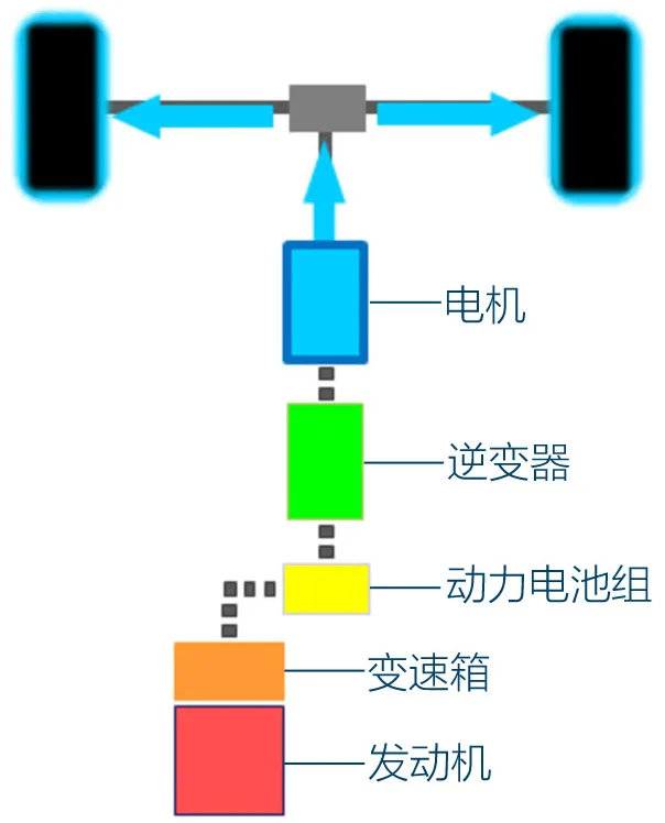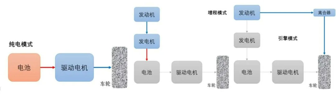 整个系统的运行逻辑也与本田i-MMD大致相同,在纯电模式下,车辆由电池组供电,电机负责驱动车轮,此时发动机熄火。在混动模式下,发动机带动发电机,发电机将电能输送给驱动电机负责驱动车轮。于此同时,发电机还能通过发动机或者动能回收的方式随时为电池组补充能量。