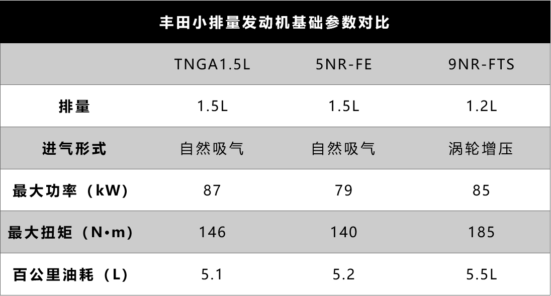性能层面上,TNGA 1.5L Dynamic Force也没有因为注重燃油经济性的取向而损失动力,相反,对比丰田现售车型上搭载的1.5L和1.2T这两款小排量发动机,不仅仅是燃油经济性,包括最大功率也都有一定优势。