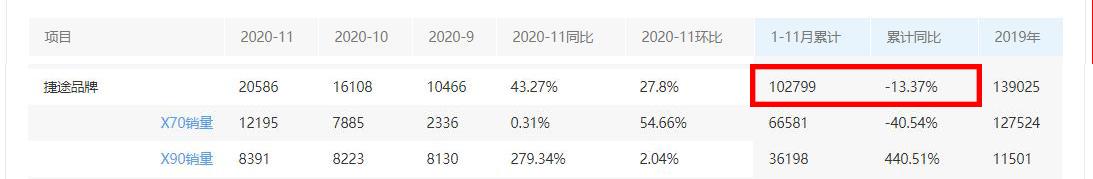 要知道,同是奇瑞旗下的捷途品牌,即便累计销量同比去年下降了-13.37%,但其在1-11月也还是交出了一份102799辆新车的销量成绩单。而且值得注意的是,捷途正常在售也只有两款车型,它们分别是捷途X70和X90。