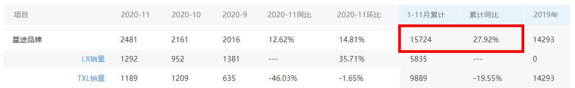之所以说"败",是因为星途品牌今年的销量可以用惨淡来形容。据销量数据统计,星途品牌旗下两款车型在今年1-11月总共交出了一份15724辆销量数据的成绩单,其中,星途LX今年前11个月累计销量5835辆,星途TXL (配置|询价)累计销量9889辆。显然,这样的销量成绩可以用一片惨淡来形容。