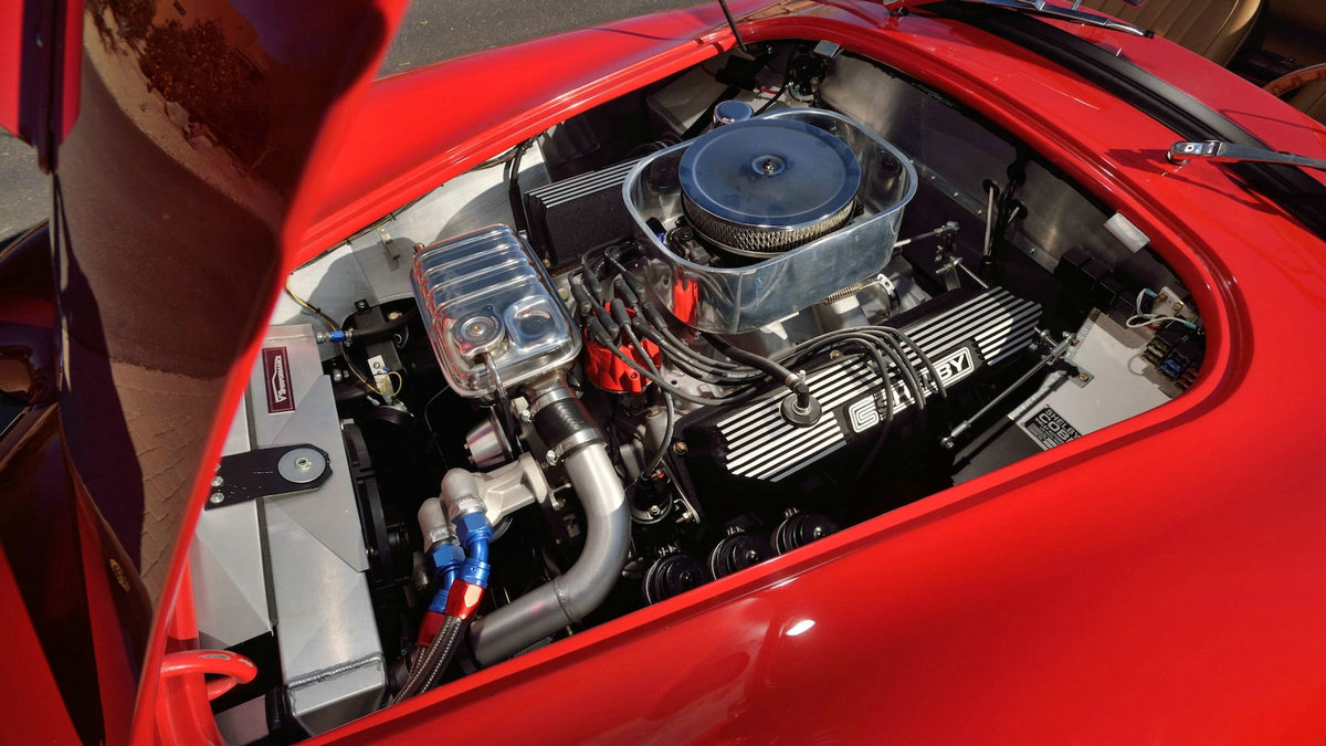 在性能方面,该车采用了Shelby 427 FE 468 V8发动机,输出550马力。此外,它还配备了Tremec TKO600 5速手动变速箱、四轮独立悬挂、齿轮齿条式转向、油冷器和双风扇铝制散热器、Shelby铝制差速器外壳以及带Shelby卡钳的Wilwood刹车。
