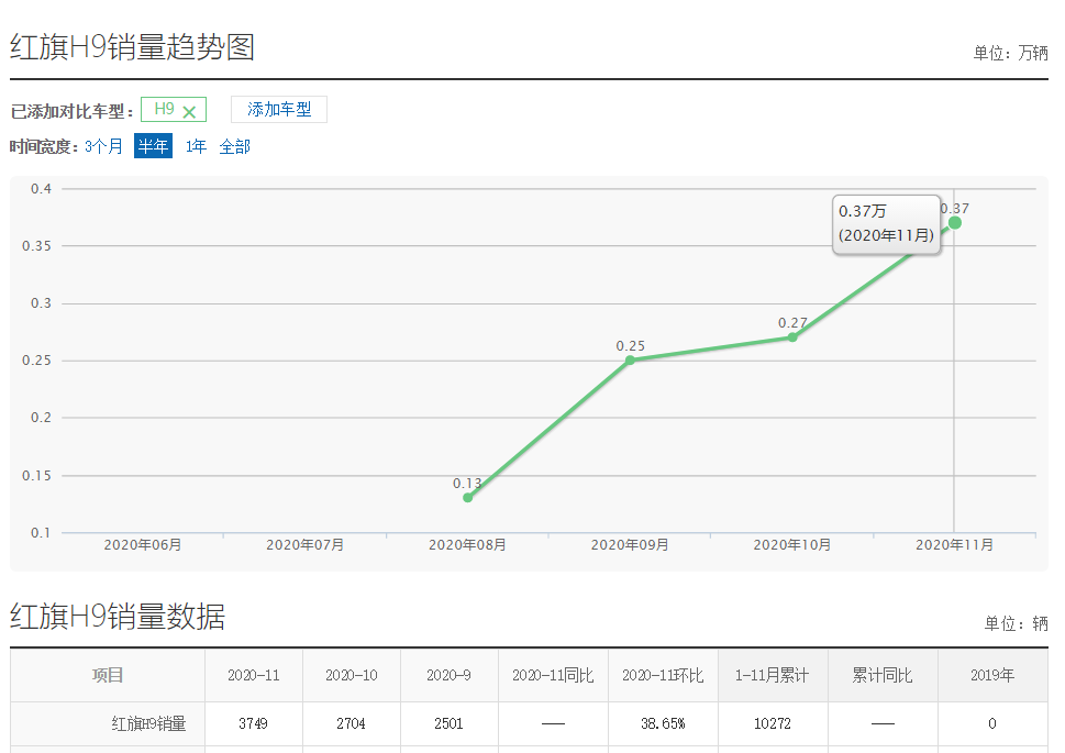 动力上,一汽红旗为这台H9提供了2.0T和3.0T V6两种排量可选,2.0T最大功率为252马力,3.0T最大功率为283牛米,传动则是全系匹配的7挡双离合变速箱。总的来说,红旗H9的出现让国人拥有了入手一台精品中大型轿车的机会,在11月,这台车也卖出了3749辆的销量数据,作为一款售价超过30万的中大型车,能有这样的成绩,可见国人对其之认可。不得不说,红旗H9的出现确实让国产中大型车快速得以腾飞,而我们也更加期待它接下来的表现。